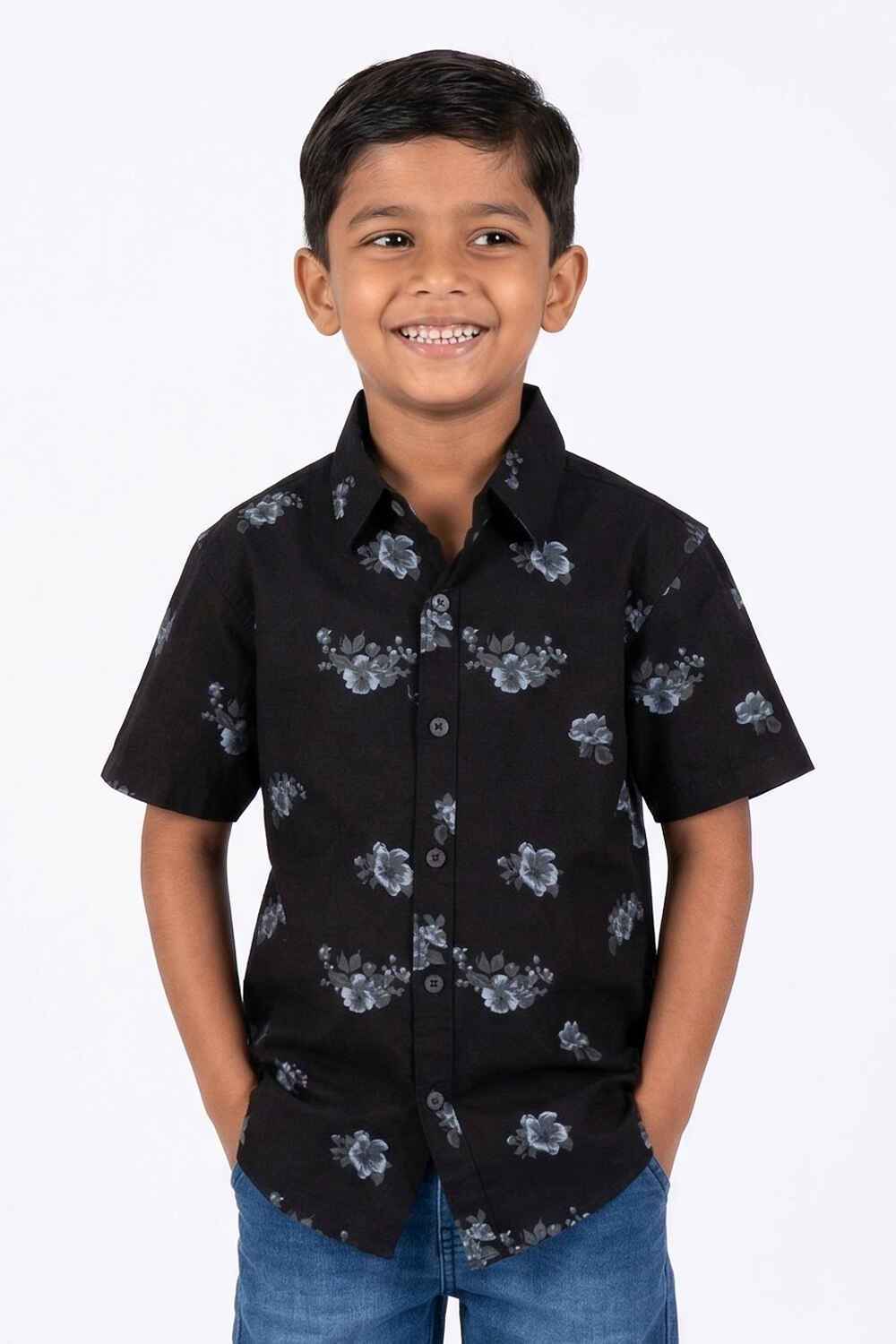 Krass Boys Slim Fit Printed Shirt - Silver Boom