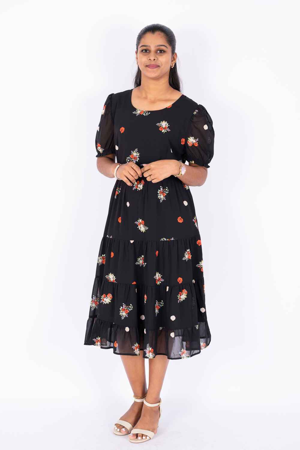 Nifty Soul Round Neck Ruffled Hem Dress