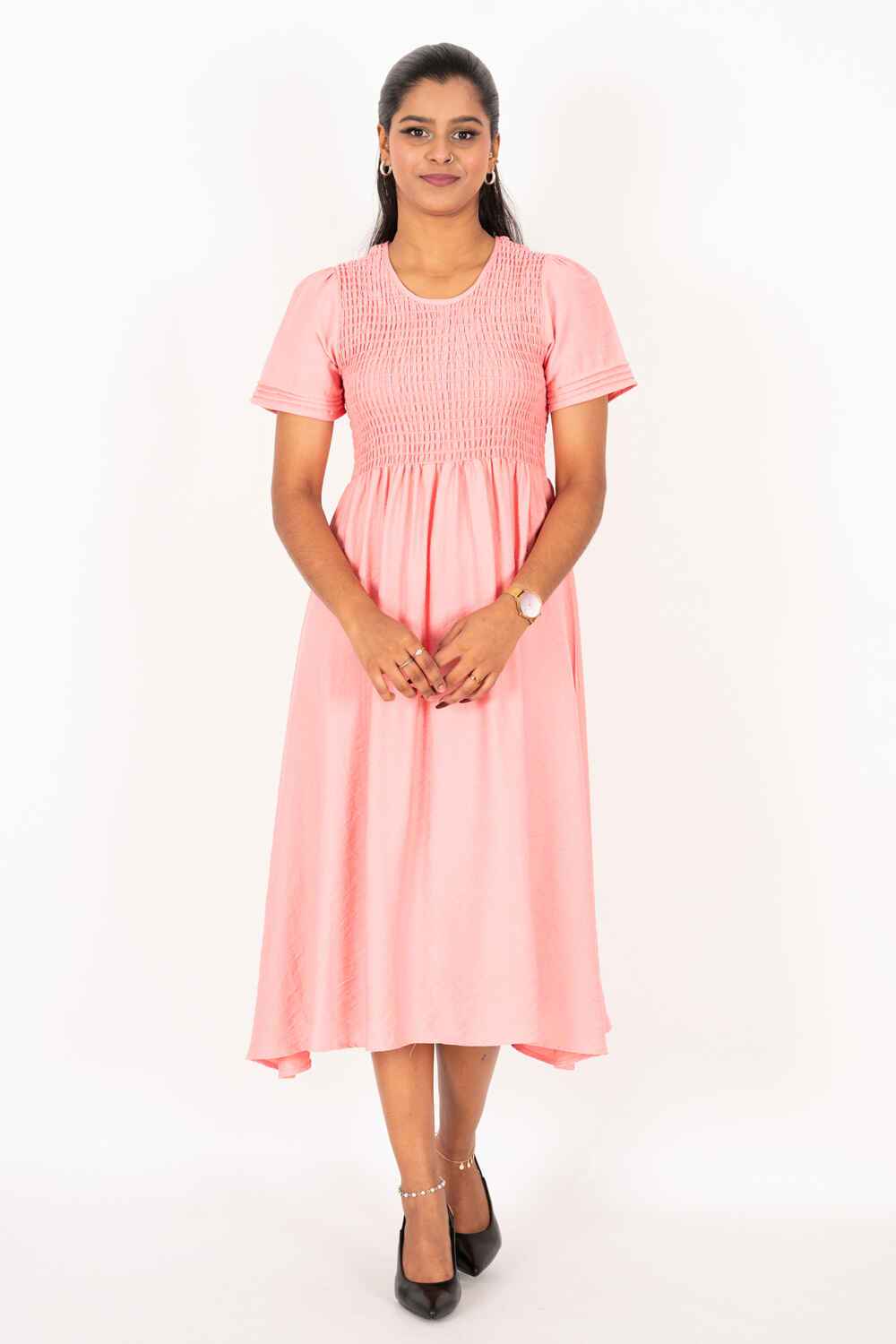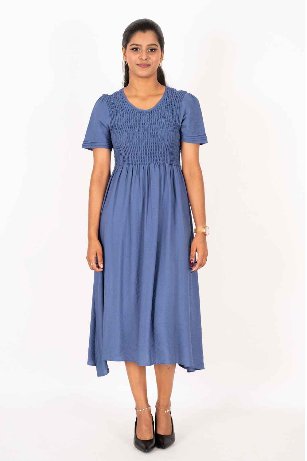 Nifty Soul Round Neck Smocked Midi Dress