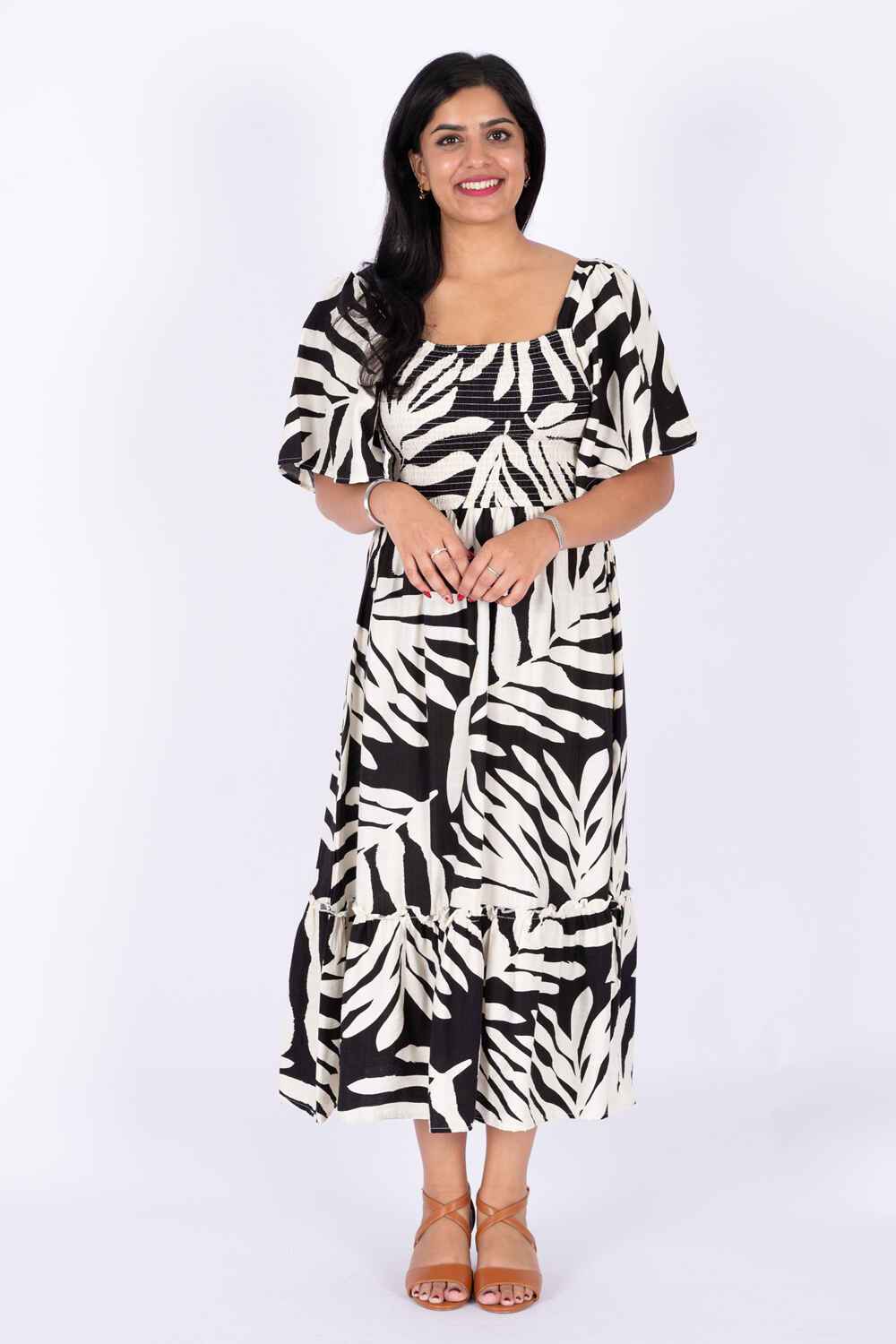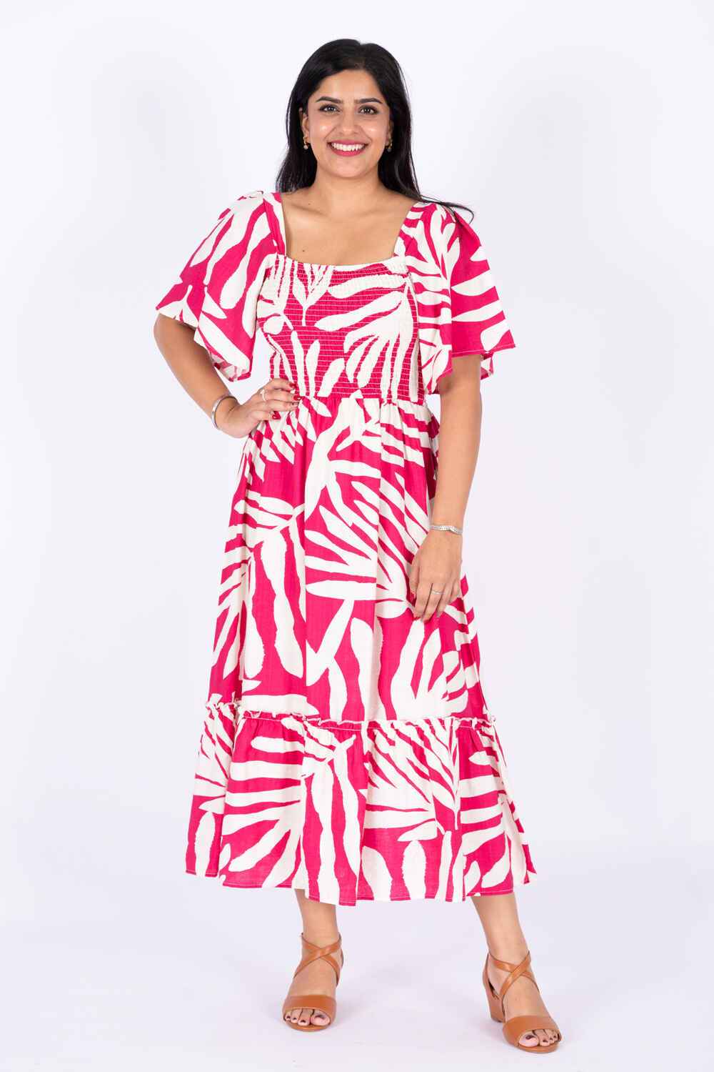 Nifty Soul Smocked Dress With Frill Sleeve