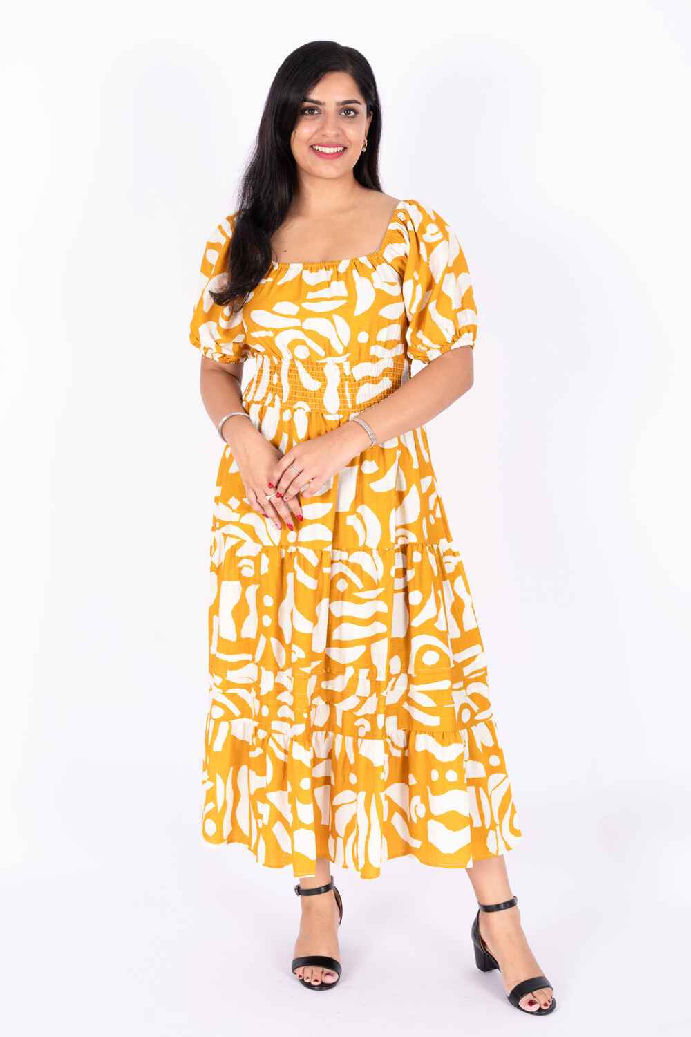 Nifty Soul Square Neck Dress With Puff Sleeve