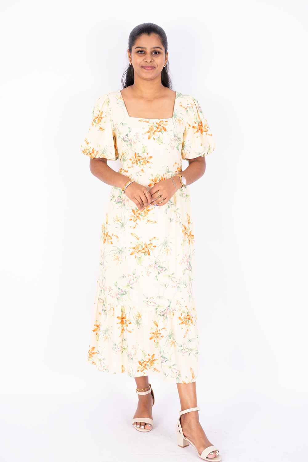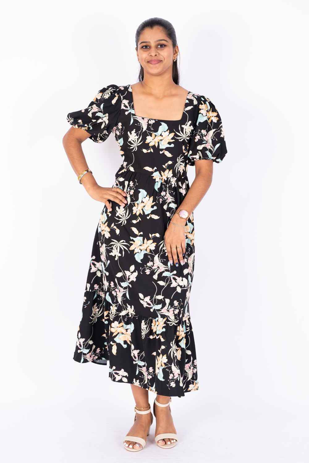 Nifty Soul Square Neck Ruffled Hem Dress
