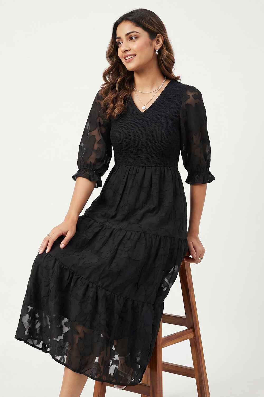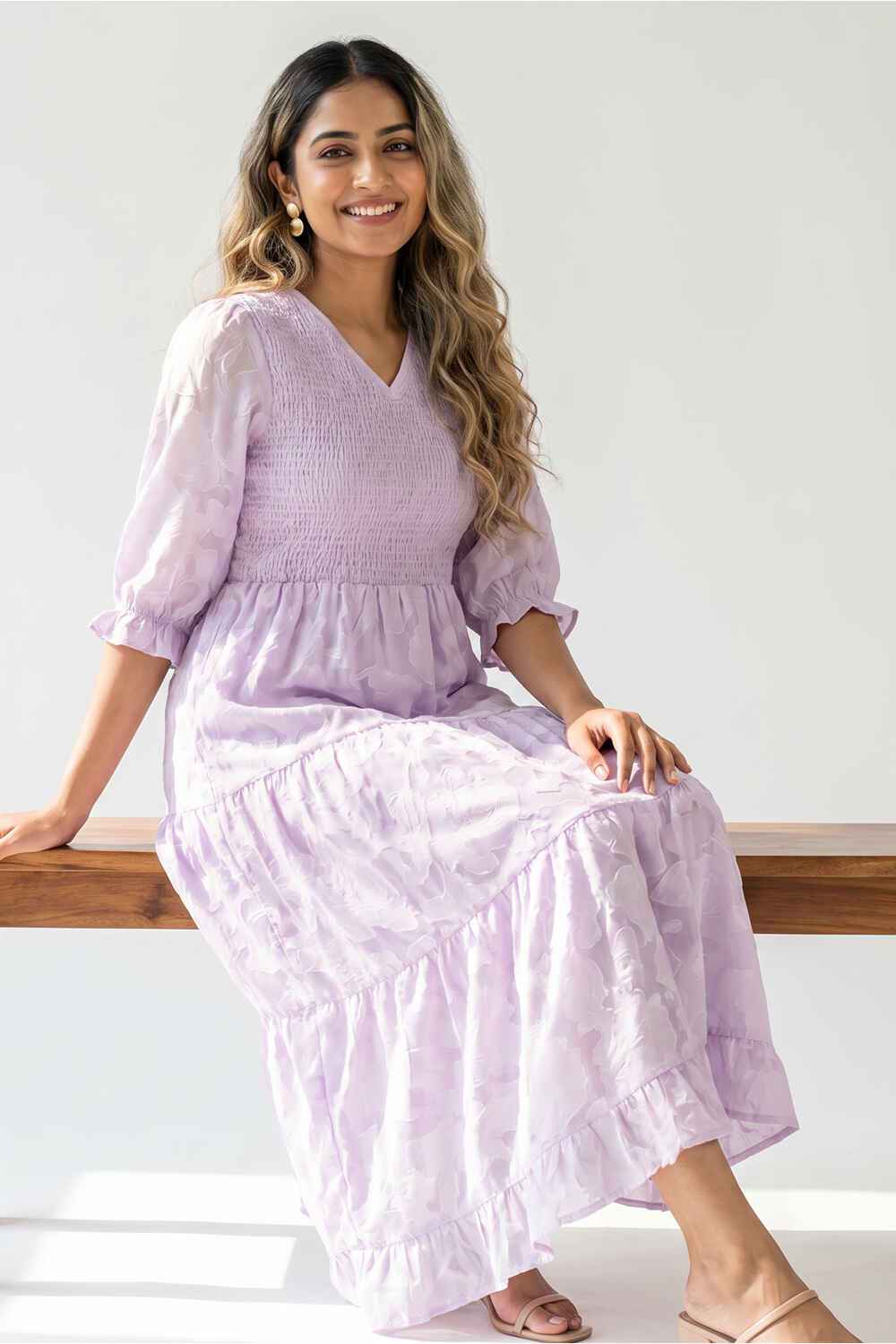 Nifty Soul V Neck Smocked Dress