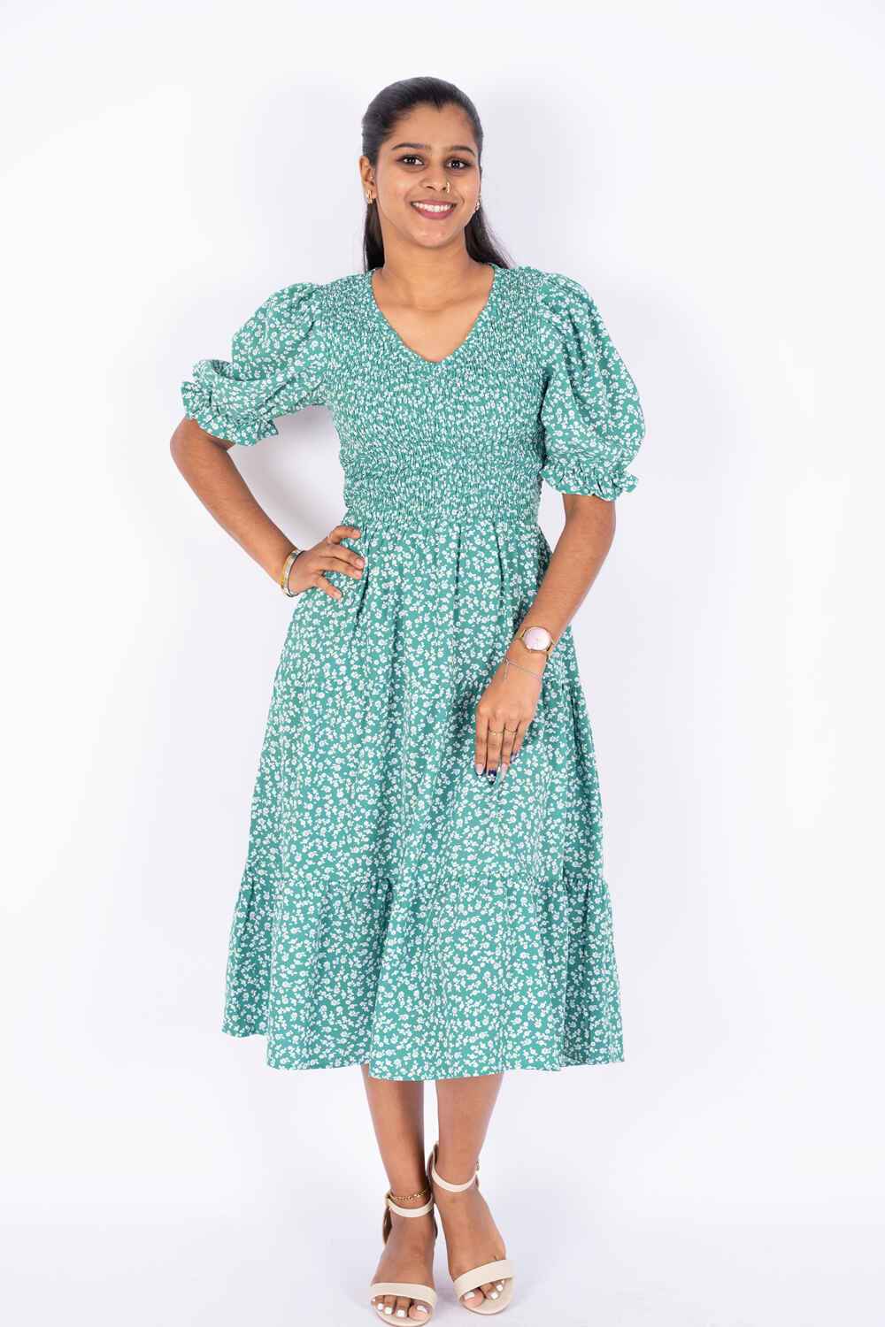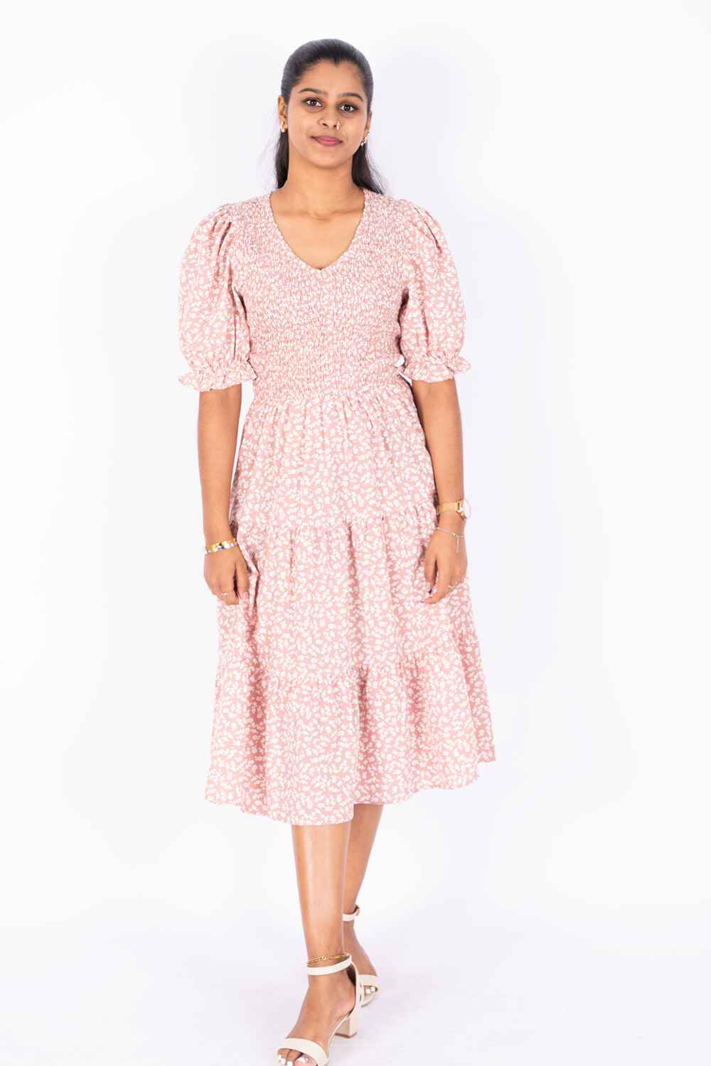 Nifty Soul V Neck Smocked Dress